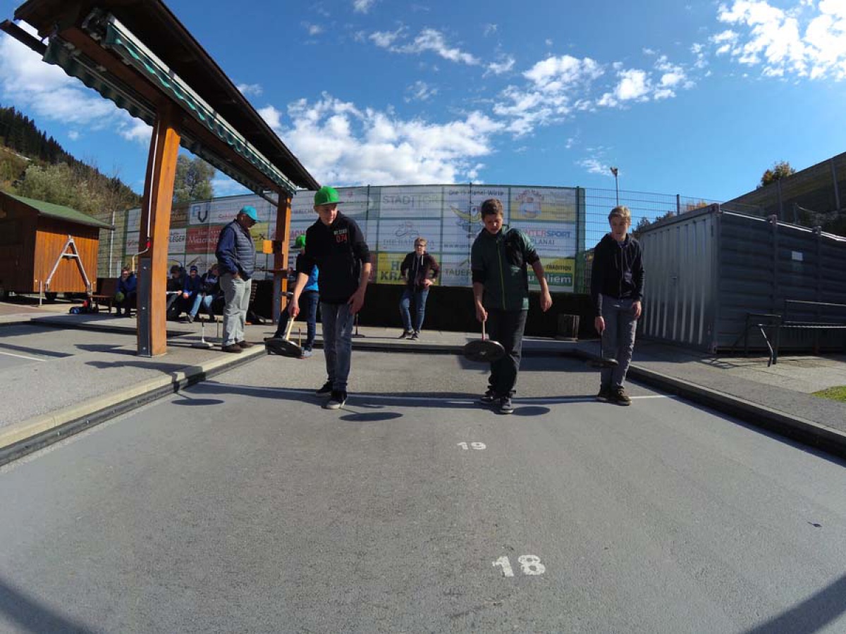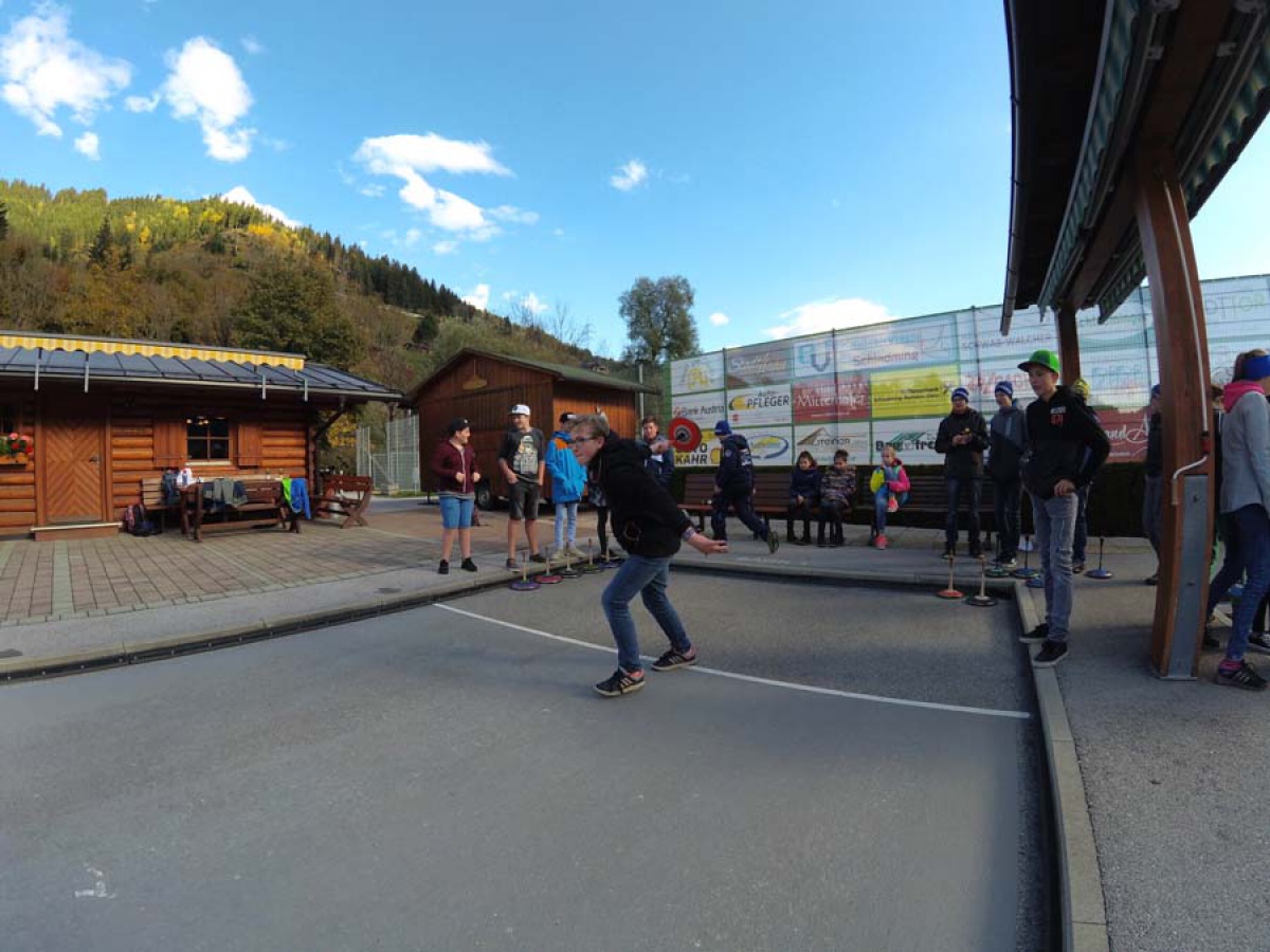 Am 12. Oktober 2017 fand in Schladming die Bezirksmeisterschaft im Asphalt-Stockschießen statt. Zwei tapfere Mannschaften, bestehend aus Mädchen und Burschen der 4b und 3a, vertraten unsere Schule, indem sie sich den Herausforderern aus Stein an der Enns, Bad Mitterndorf, sowie der NMS Erzherzog Johann stellten.