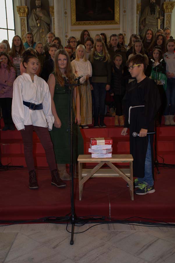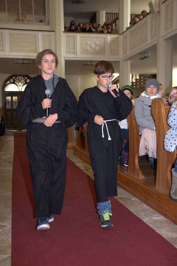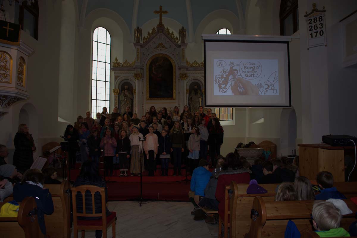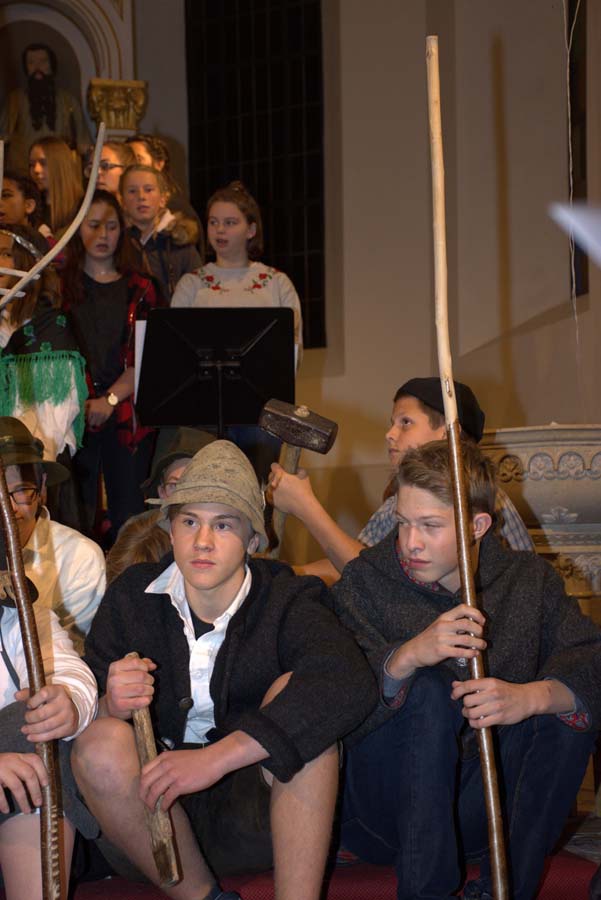 Mit diesen Fragen beschäftigten sich 120 SchülerInnen der NMS 1 Schladming im Schulchor und als Schauspieler bei der Umsetzung des dramatisch-musikalischen Werks. Das Singspiel - unter der musikalischen Leitung von HOL Karin Noiges - veranschaulichte das Leben Martin Luthers kindgerecht, spannend und mit schwungvollen Melodien. Gespräche von vier Jugendlichen, katholisch und evangelisch, leiteten durch das Stück. Schauspieler der dritten Klassen überraschten während ihres Spiels sogar mit einer Filmszene. KlavierschülerInnen begleiteten den Chor und die bezaubernden SolistInnen.