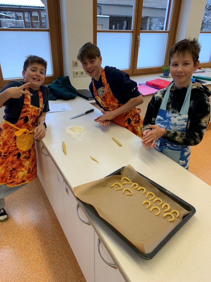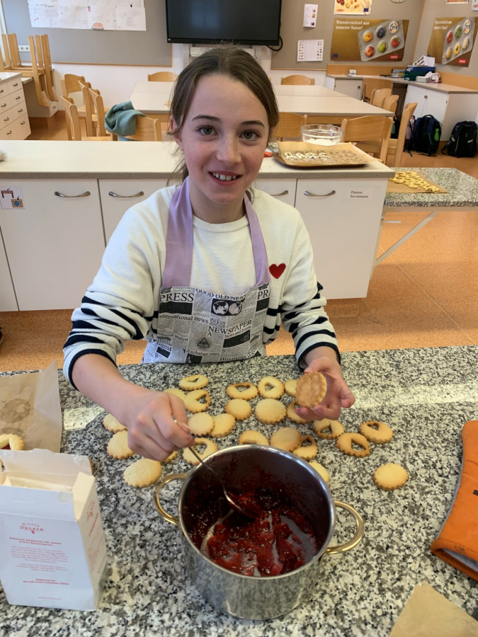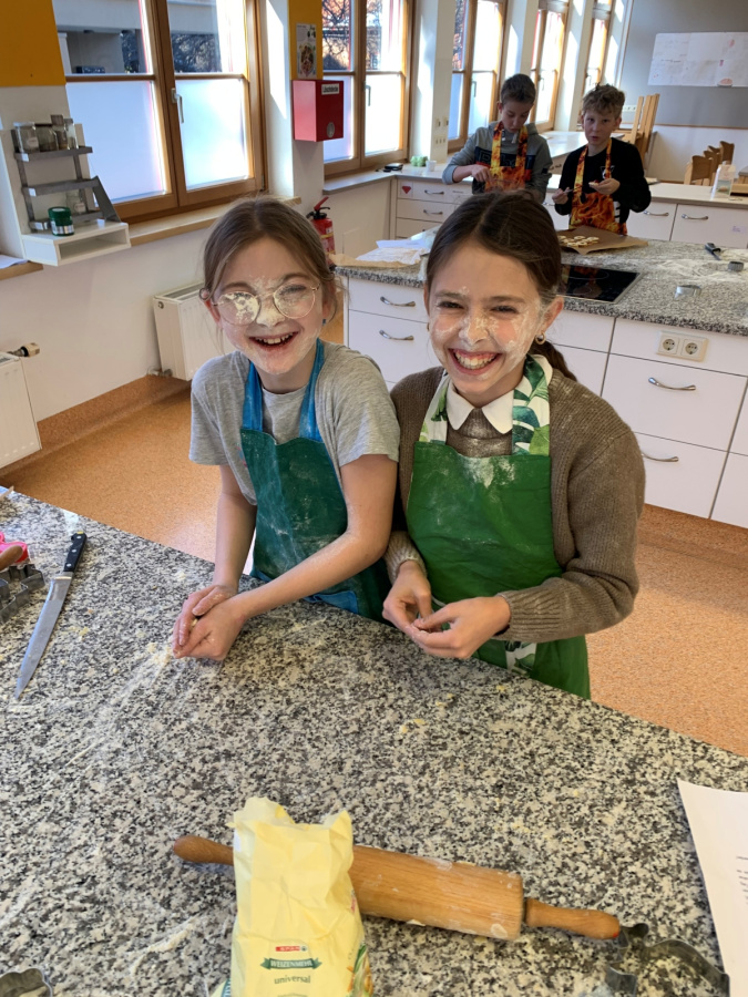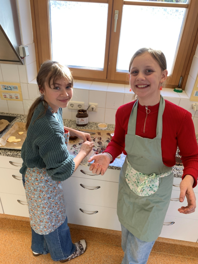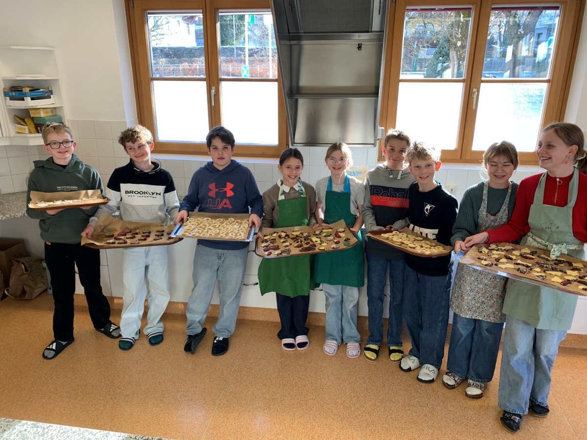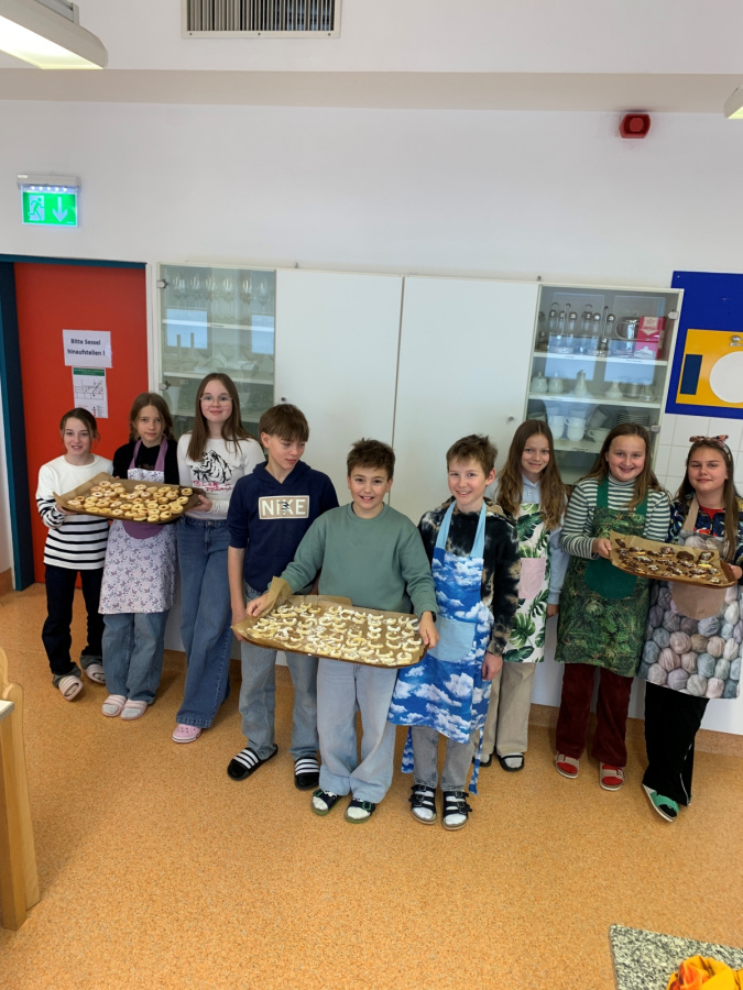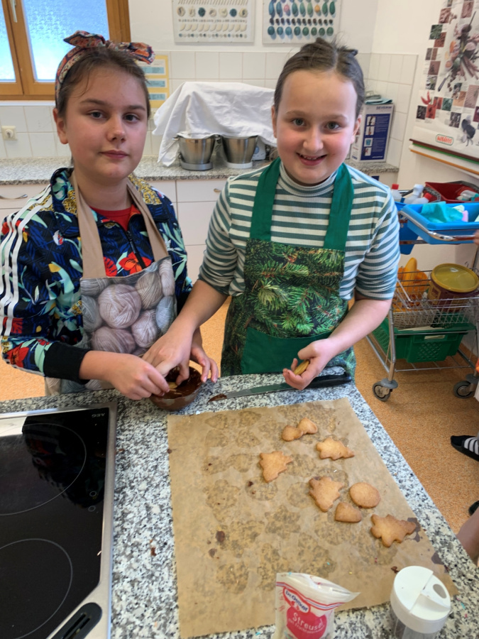 Projekte und mehr 2025/2026 Kekse backen in der 2a Pünktlich in der Vorweihnachtszeit backten die Kinder im EH-Unterricht gemeinsam Kekse. Mit Mehl an den Händen (sowie im Gesicht J ) und guter Laune entstand ein süßer Duft in der ganzen Küche. Die Freude über die selbstgemachten Kekse war groß.