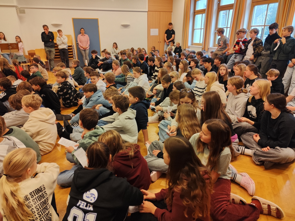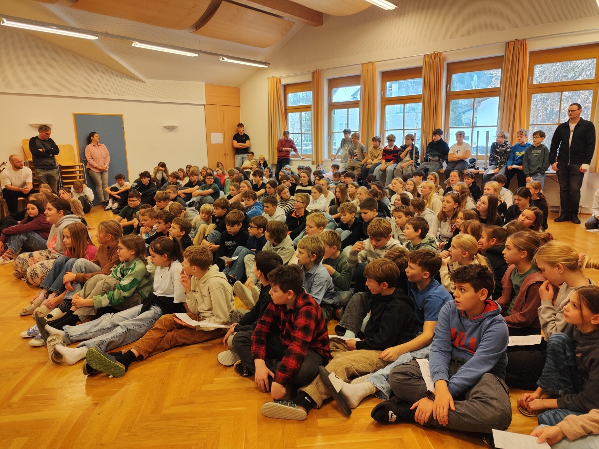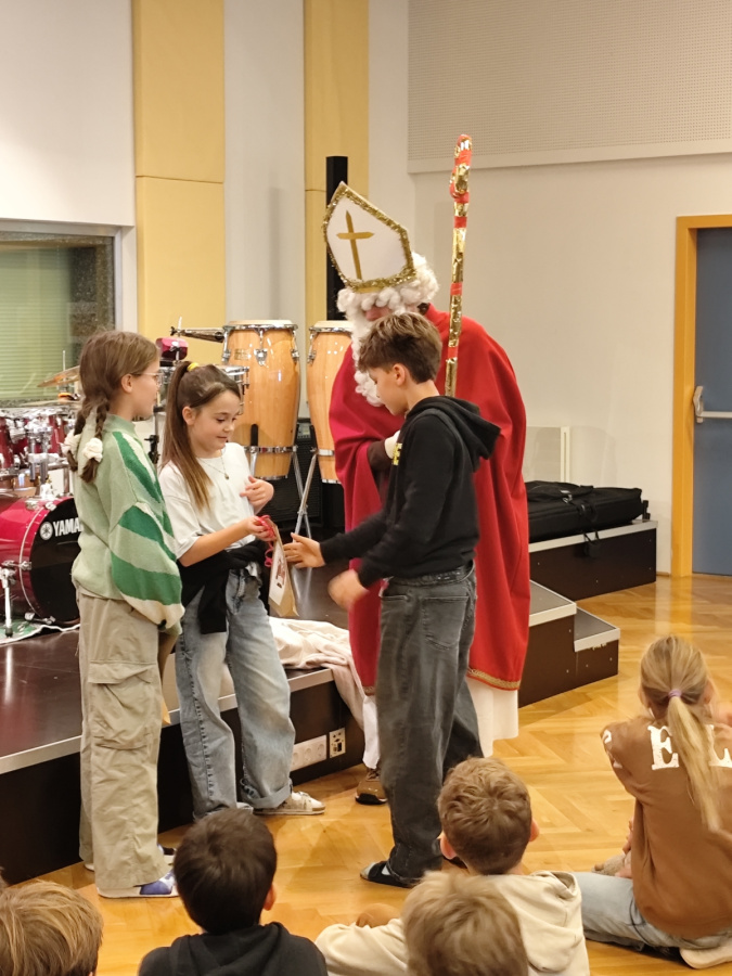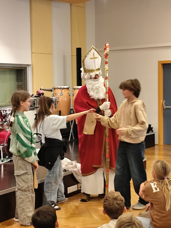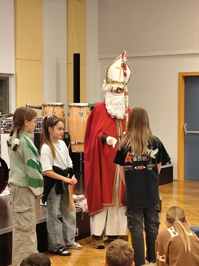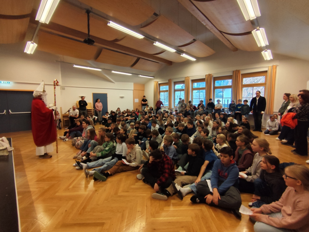 Der Nikolaus erzählte vom bewegten Leben und Wirken des Heiligen. Die Schülerinnen und Schüler lauschten den Geschichten über seine guten Taten, seinen Mut und seine Hilfsbereitschaft - Werte, die auch für die Schulgemeinschaft großen Stellenwert haben.