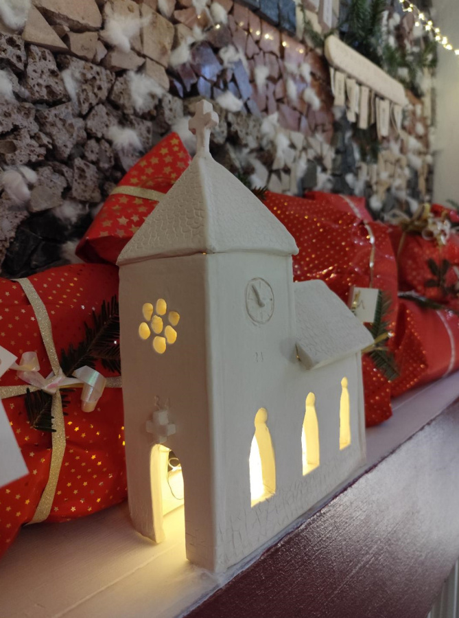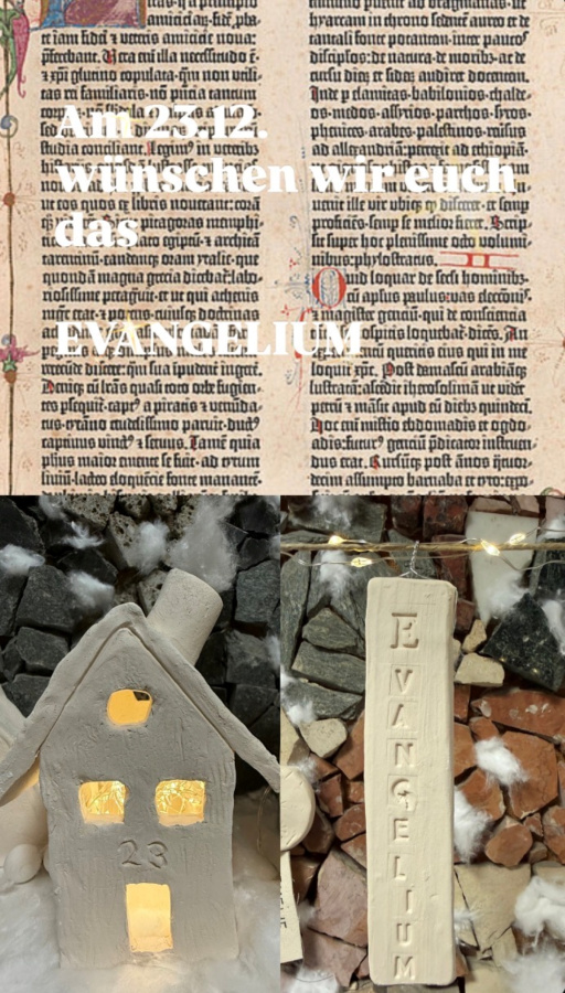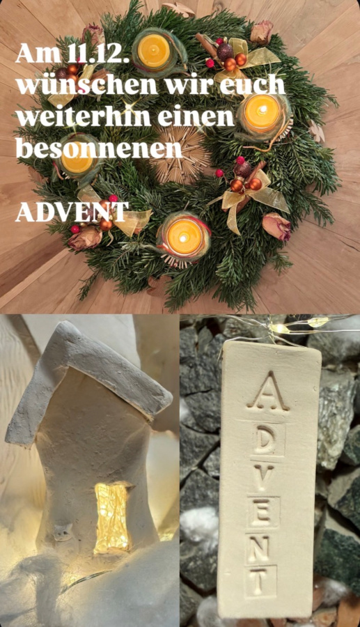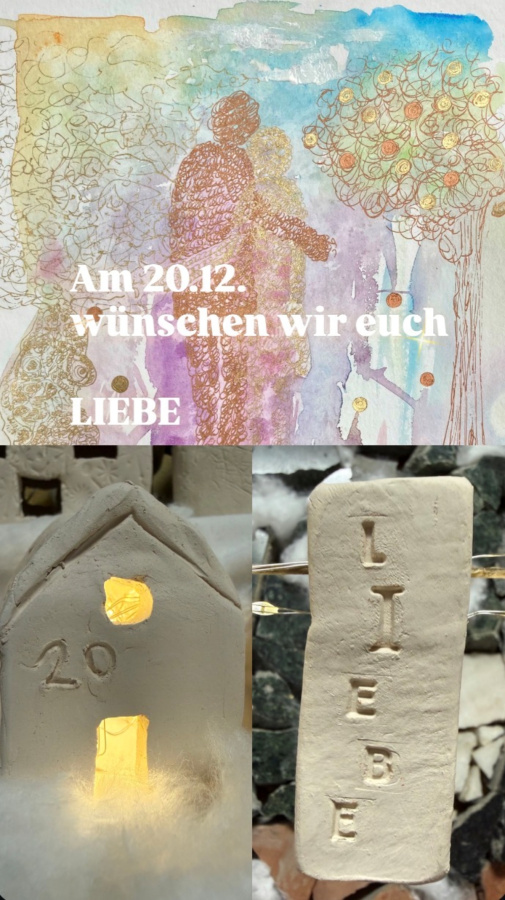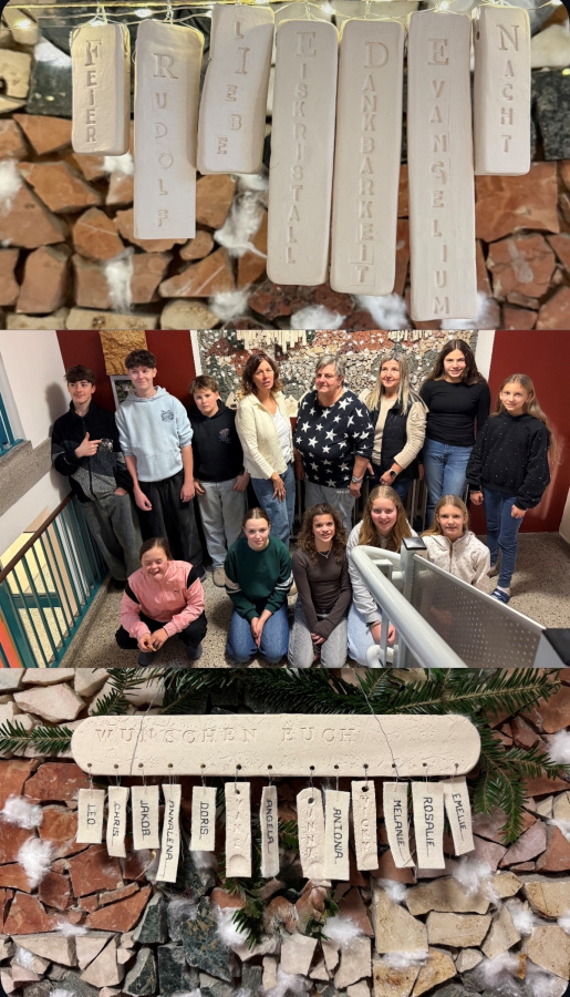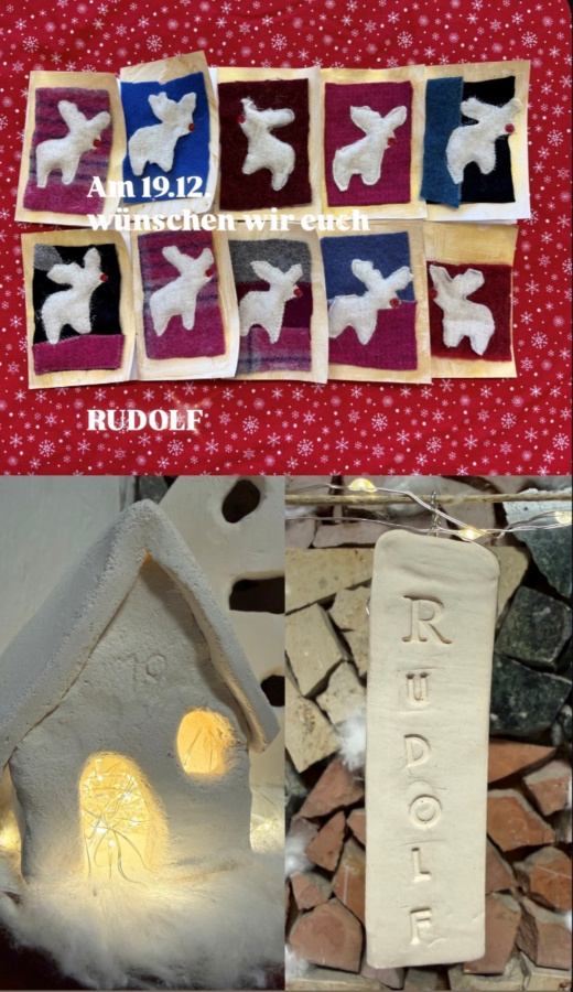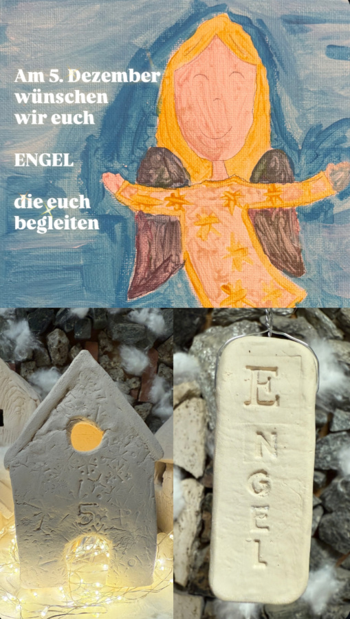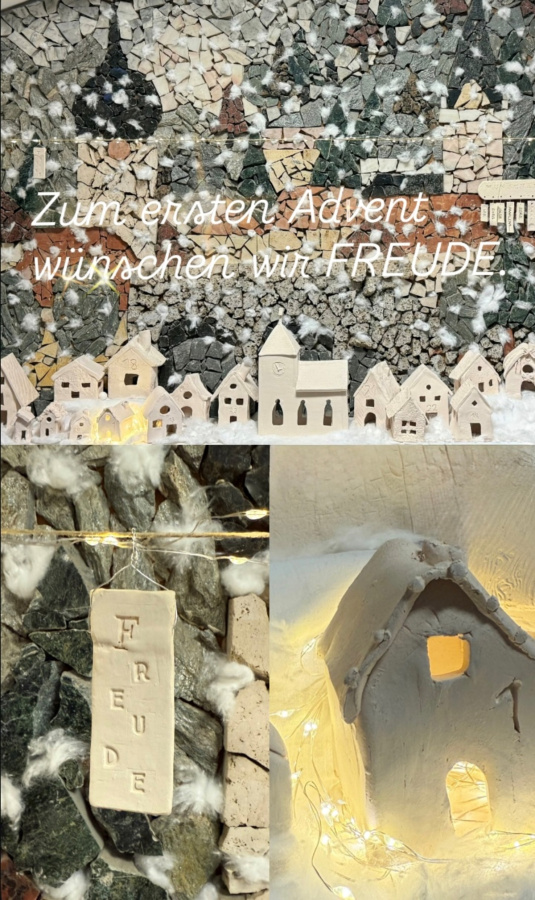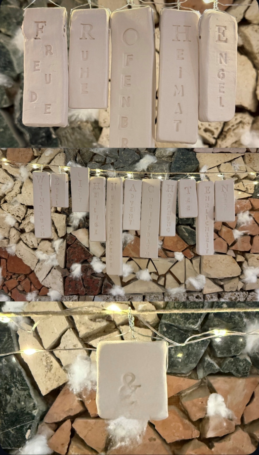 Die Vorbereitungen für unseren in dieser Form erstmaligen Adventkalender liefen schon im November auf Hochtouren. Die Schülerinnen und Schüler der Kreativgruppe der 3.Klassen erarbeiteten alle Wörter, Schilder und Häuser aus Ton unter meiner Leitung. Es war für mich besonders berührend, welche Wörter den Kindern eingefallen sind. Zu jeden Anfangsbuchstaben, die letztendlich Frohe Weihnachten & Frieden… ergaben, wurde jeweils ein Wort für die 24 Tage zugeordnet.