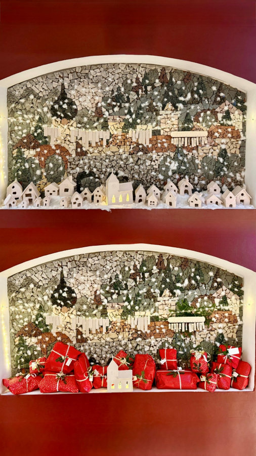 Jeden Tag wurde ein Haus beleuchtet und das Wort dazu gehängt. Jedes Haus schaut anders aus und trotzdem ist es eine wunderschöne Stadt geworden. Die Stimmung beim Arbeiten war fröhlich, motiviert und förderte die Gemeinschaft. Herzliches Dankeschön an alle Künstlerinnen und Künstler. Frohe Weihnachten und Frieden wünscht Frau Elisabeth van Stralendorff