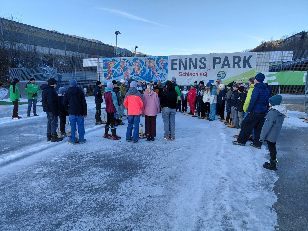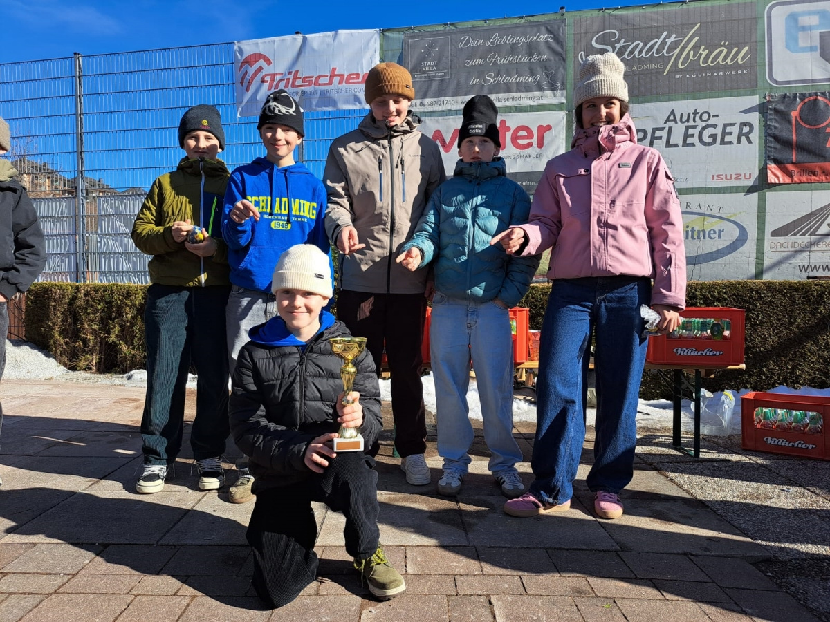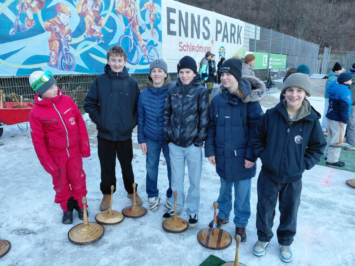 Am Dienstag, dem 10.02., fanden bei strahlendem Sonnenschein, am Stocksportplatz in Schladming, die diesjährigen Bezirksschülermeisterschaften im Eisstockschießen statt. Organisiert vom Schladminger Eisschützenverein, unter der Führung von Franz Helpferer und Siegfried Harrer, kämpften 10 Mannschaften aus dem ganzen Bezirk um den Tagessieg. Die Mittelschule Schladming war mit 4 Mannschaften vertreten. Mit Würstel und Punsch bestens versorgt, waren alle TeilnehmerInnen mit vollem Einsatz und Eifer bei der Sache und zeigten großartige sportliche Leistungen. Besonders erwähnenswert ist, dass die Mannschaft der ersten Klassen durchaus mit den „Großen“ mithalten konnte. Ein großer Dank gebührt dem Eisschützenverein Schladming, allen voran Hr. Franz Helpferer, für die perfekte Organisation und die großzügige Verpflegung. Wir freuen uns auf ein Wiedersehen im nächsten Jahr.